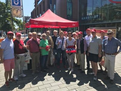 Zu Gast am Stand des DGB war die SPD-Bundestagsabgeordnete Bärbel Bas. Neben der Einführung der Grundrente, hat auch sie die Abschaffung der Doppelverbeitragung der Krankenkassen- und Pflegebeiträge auf Betriebsrenten gefordert. Seit 2004 müssen Bezieherinnen und Bezieher von Betriebsrenten volle Krankenkassenbeiträge bezahlen, auch dann, wenn diese bereits während des Ansparens gezahlt wurden. „Die Betriebsrente ist ein wichtiger Eckpfeiler der Altersvorsorge. Eine Doppelverbeitragung ist daher zutiefst ungerecht und schwächt die Beschäftigten mit einem niedrigen und mittleren Einkommen. Deshalb muss sie nun endlich abgeschafft werden“, so Surat abschließend.